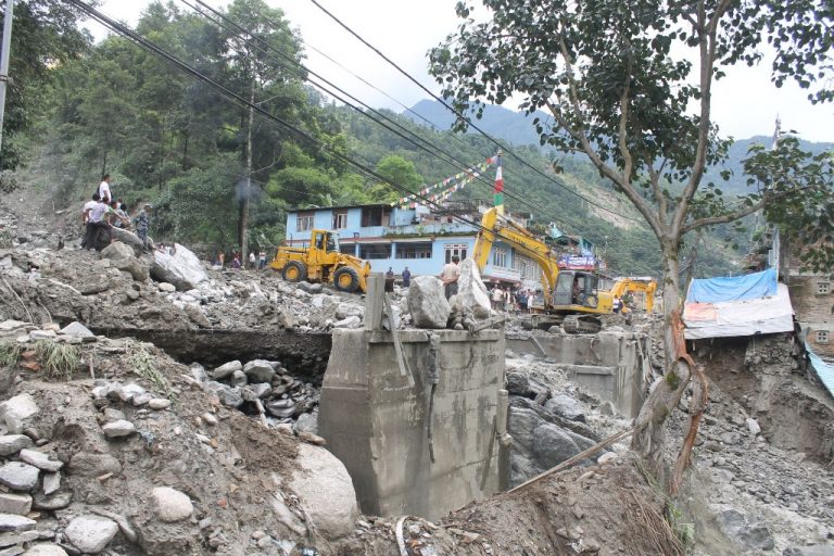 बाढीले पुल बगाएपछि सडक विभाग र स्थानीय सरकारले सडक छिचोल्न आधा दर्जन स्काभेटर लगाएर निरन्तर प्रयास गरिरहेका छन् । बाढीले ल्याएका ठूला ठूला ढुंगा फेर्न एउटा ब्रेकर आइतबार विहानैदेखि लगाइएपनि अवेरसम्म सडक छिचोलिएको छैन । तिन वटा स्काभेटर र एउटा लोडर पनि आइतबार विहानैदेखि लगाइएको छ तर सडकको निशाना नै हराएपछि नयाँ ट्रयाक खोल्न नसकीएको हो ।