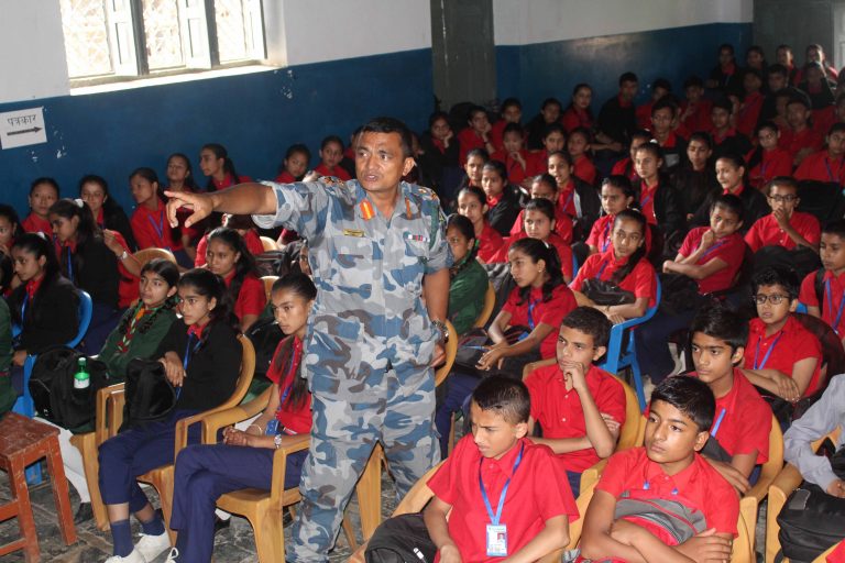 प्रहरी नयव उपरिक्षक रायमाझीले बिद्यार्थीहरुलाई भने,‘जस्ले हल्ला गर्छ उसले चक्लेट पाउछ, जो निदाउन उसले चक्लेट पाउछ र जस्ले सोधेको प्रश्नको जवाफ दिन्छ उसले चक्लेट पाउछ भनेपछी सबै बिद्यार्थी चुपलागे ।’ माध्यमिक तहमा पढने बिद्यार्थीहरुका लागि सुरु गरिएको जन चेतना मुलक लागु औषध दूव्यसनी तथा बिपत व्यवस्थापन सम्बन्धी स्कुल कार्यक्रममा यसरी प्रस्तुति सुरु गरिएको थियो ।