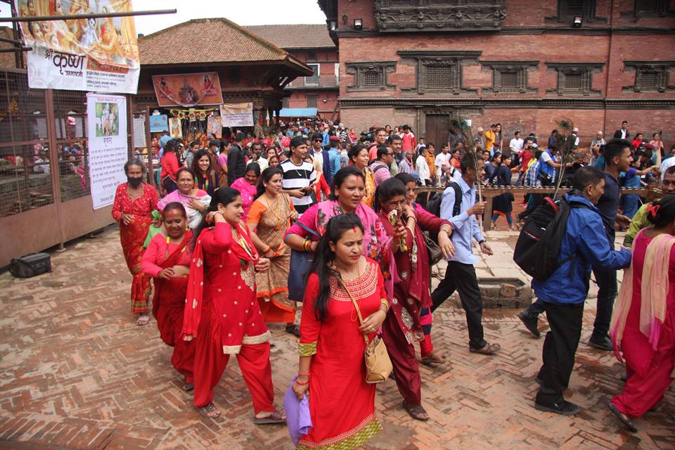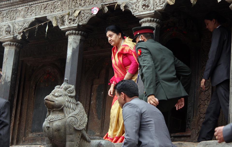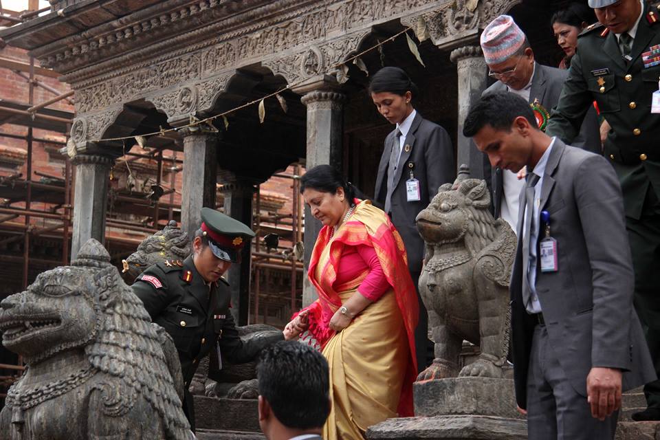 प्रत्येक वर्ष भाद्र कृष्णाष्टमी अर्थात् आजका दिन राष्ट्राध्यक्षले पाटन कृष्ण मन्दिरमा पूजा एवं दर्शन गर्ने परम्परा रहिआएको छ । सो अवसरमा राष्ट्रपति भण्डारीले मन्दिरका पुजारीबाट फूल एवं प्रसाद ग्रहण गरिन् । सत्रौँ शताब्दीमा राजा सिद्धिनरसिंह मल्लका पालामा निर्माण भएको उक्त मन्दिर गोरखा भूकम्पबाट आंशिक क्षति पुगेकामा हालै मर्मतसम्भार गरिएको हो ।