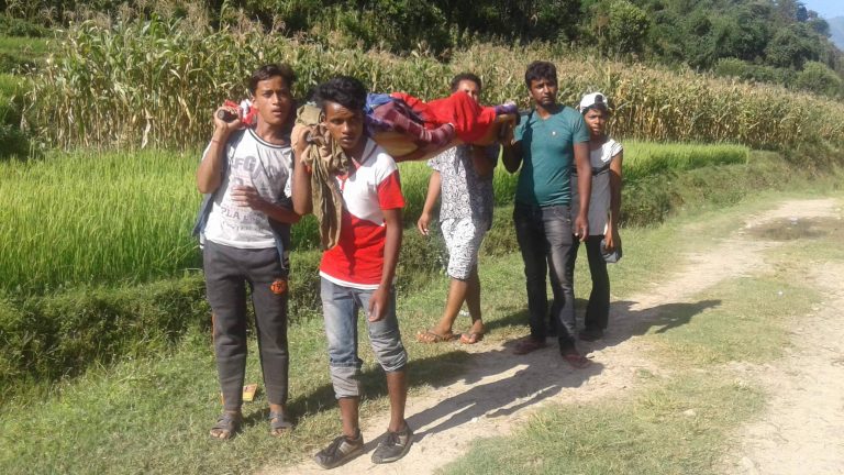 त्रिबेणी गाँउपालिका ९ का बिरेन्द्र गहतराजले ५ घण्टामा स्टेचरमा बोकेर श्रीमती सिर्जनालाई अस्पताल पुर्याए । सुत्केरी व्यथा लागेपछि श्रीमतीलाई सुरक्षित सुत्केरी गराउन जिल्ला अस्पताल पुर्याउनै पर्ने बाध्यता बिरेन्द्रको थियो । बर्षातका कारण भत्कीएका ग्रामिण सडकहरु पुर्ननिमार्ण नहुँदा बिरामीलाई समयमा अस्पताल पुर्याउन समस्या भएको छ ।