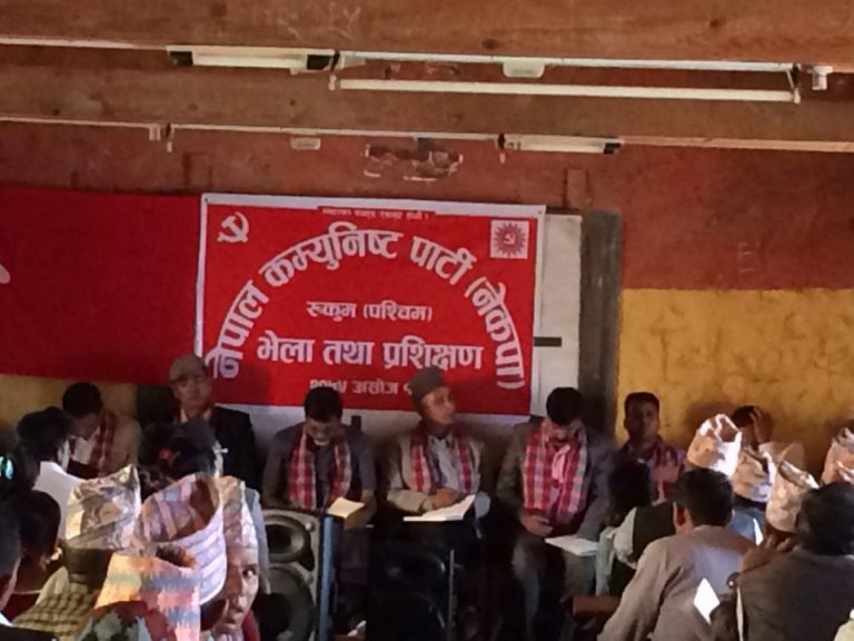आइतबार रुकुम पश्चिमको सदरमुकाम मुसिकोट खलंगामा पार्टी कार्यकर्ता प्रशिक्षण तथा भेलाको आयोजना गरी सो जानकारी गराइएको हो । पार्टी स्थायी समिती सदस्य एवं कर्णाली प्रदेशका इन्चार्ज जनार्दन शर्माले कार्यकतालाई जनताको माझमा गएर पार्टीका निति र सिद्धान्तबारे प्रष्ट पार्न निर्देशन दिनुभएको छ । यसै गरी नेकपाको जिल्ला पार्टी एकिकरण पनि छिटै हुने कर्णाली प्रदेश इन्चार्ज शर्माले जानकारी दिनुभयो । जिल्लामा सबै टुंगो लागीसकेको र केन्द्रबाट सर्कुलर आउन बित्तिकै जिल्ला पार्टी एकता घोषणा हुने उहाँले बताउनुभयो ।