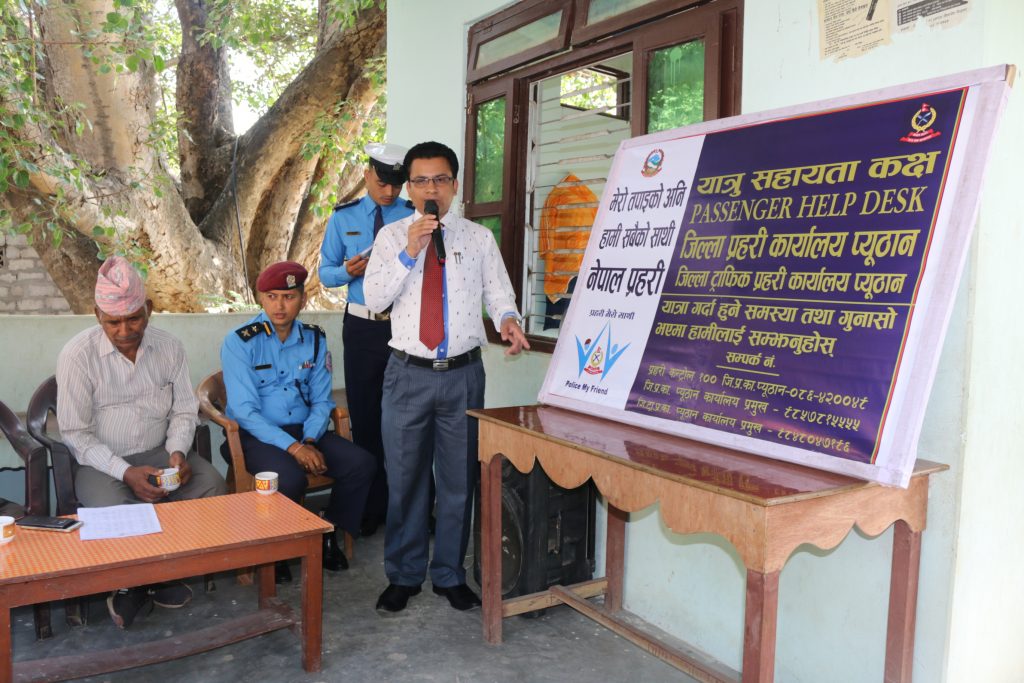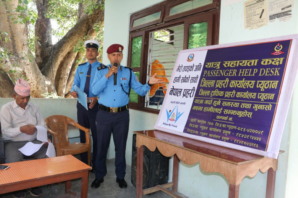 जिल्ला प्रहरी कार्यालय प्युठानले नजिकिँदै गरेको दशैं, तिहार एवं छ्ठ पर्वमा यात्रुको सहजताका लागि यात्रु सहायता कक्ष सञ्चालनमा ल्याएको छ।