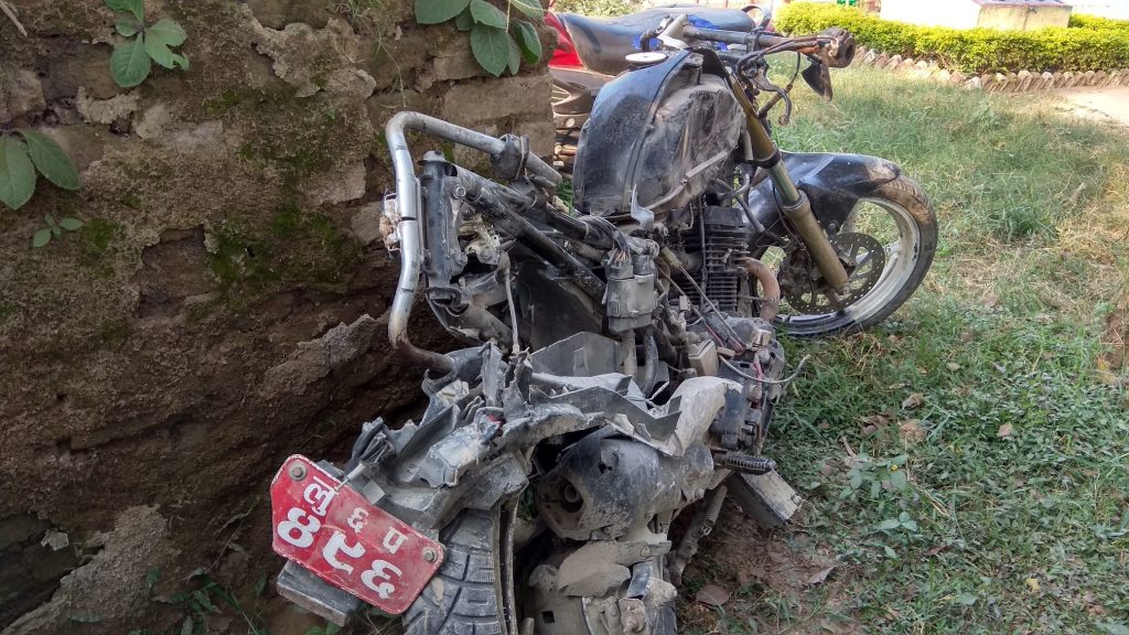 दाङको कालाकाटेबाट चन्द्रौटातर्फ आइरहेको रा १ ख ७३२ नम्बरको टिप्परमा विपरीत दिशाबाट गइरहेको लु ६ प ४९६ नम्बरको मोटरसाइकल ठोक्किंदा दुर्घटना भएको हो । तिब्र गतिमा गइरहेको मोटरसाइकल अघिल्लो गाडीलाई ओभरटेक गर्ने क्रममा विपरीत दिशाबाट आइरहेको टिप्परमा ठोक्किएको प्रत्यक्षदर्शीले बताएका छन् । दुर्घटनामा परी मोटरसाइकल चालक कुमालको घटनास्थलमै मृत्यु भएको वडा प्रहरी कार्यालय चन्द्रौटाले जनाएको छ । मृतकको शव पोष्टमार्टमका लागि बहादुरगञ्ज पठाइएको प्रहरीले बताएको छ ।