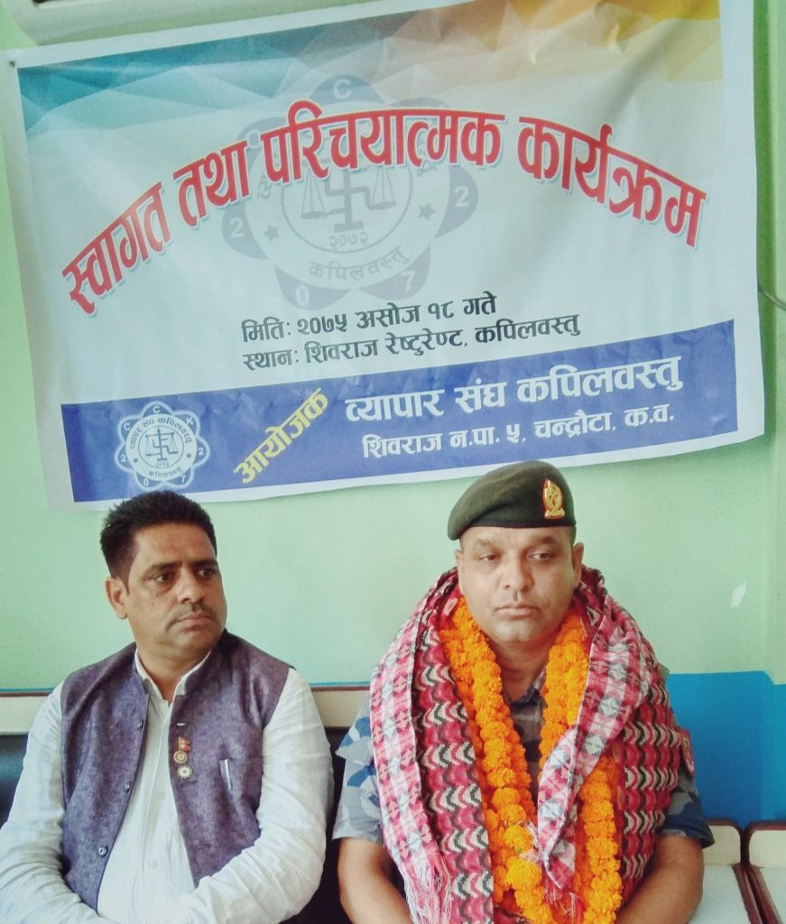अस्थायी रुपमा रहेको सशस्त्र प्रहरी बल नेपाल नं. ५ बाहिनीलाई यस क्षेत्रमै स्थायी रुपमा स्थापित गर्न विशेष पहल गर्नुपर्ने व्यापार संघ कपिलवस्तुका अध्यक्ष महादेव पोखरेलले बताउनुभयो । हालै नं. ५ बाहिनीको पदभार सम्हालेका डीआईजी अधिकारीलाई स्वागत गर्दै व्यापार संघ अध्यक्ष पोखरेलले यस क्षेत्रको सम्बेदनशिलतालाई विशेष ख्याल गरी शान्ति सुव्यवस्था कायम गर्न आग्रह गर्नुभयो ।