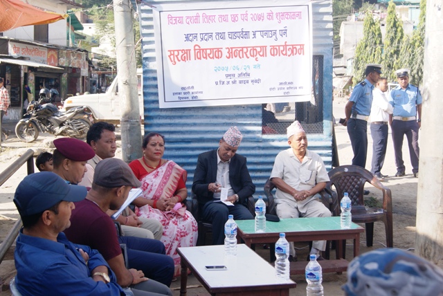 त्यस्तै सोही कार्याक्रममा बोल्दै जिल्ला प्रहरी कार्यालय डोटीका प्रहरी प्रमुख एसपी बिद्यानन्द माझीले डोटीमा ठुलो संख्यामा प्रहरी टोली खटिएकाले चाडवाडको बेलामा कसैले पनि डराउनु पर्ने अवस्था श्रृजना नहुने दाबी गर्नु भयो । उहाँले भन्नु भयो ‘हामीले पहिलेको भन्दा बढी संख्यामा प्रहरी परिचालन गरेका छौ,कुनै घटना हुने बित्तिकै हाम्रो प्रहरी टोली तत्कालै घटनास्थल पुग्नेछ ।’
