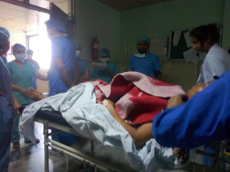 आइतवार दिउँसो ३ बजे दुर्घटना भएको थियो । दुर्घटनापछि घटनास्थलमै ग्रिलको सहायताले सरियाको बाँकी भाग काटेर शरीरमा रहेको सरियासहित राप्ती स्वास्थ्य विज्ञान प्रतिष्ठान घोराहीमा लगिएको थियो । त्यहाँ निकाल्न संभव नभएपछि भइहवा मेडिकल कलेज लगिएको थियो । भैरहवा मेडिकल कलेज राति १ बजे पु¥याइएको भए पनि केही गर्न नसक्ने बताएपछि २ बजे काठमाडौं लगिएको थियो । विहान ११ बजे वीर अस्पतालको ट्रमा सेन्टरमा पु¥याएपछि ट्रमाले शिक्षण अस्पताल रिफर गरेको थियो । दिउँसो २ बजे शिक्षण अस्पताल पुर्याइएको थियो भने जाँच गर्दा एक घण्टा जति लागेको थियो ।