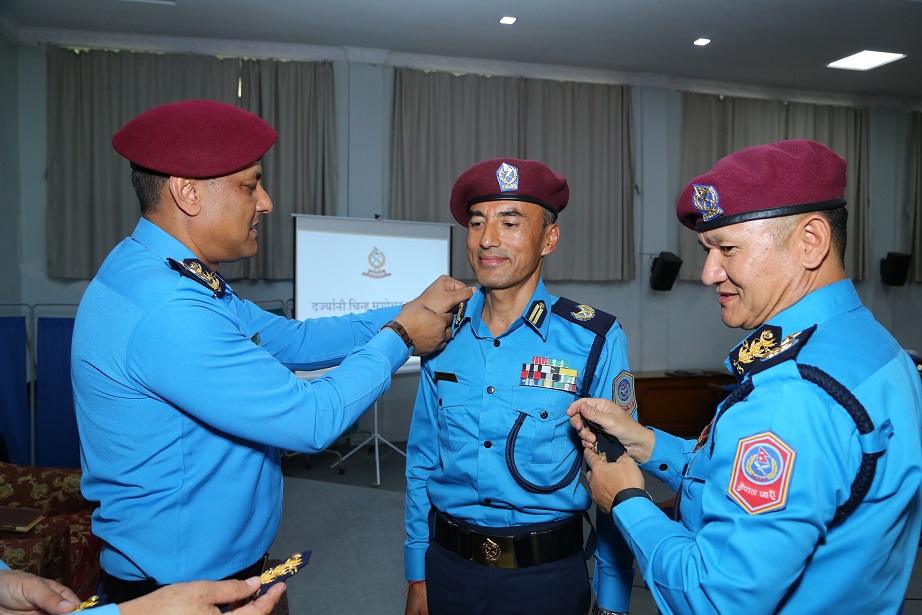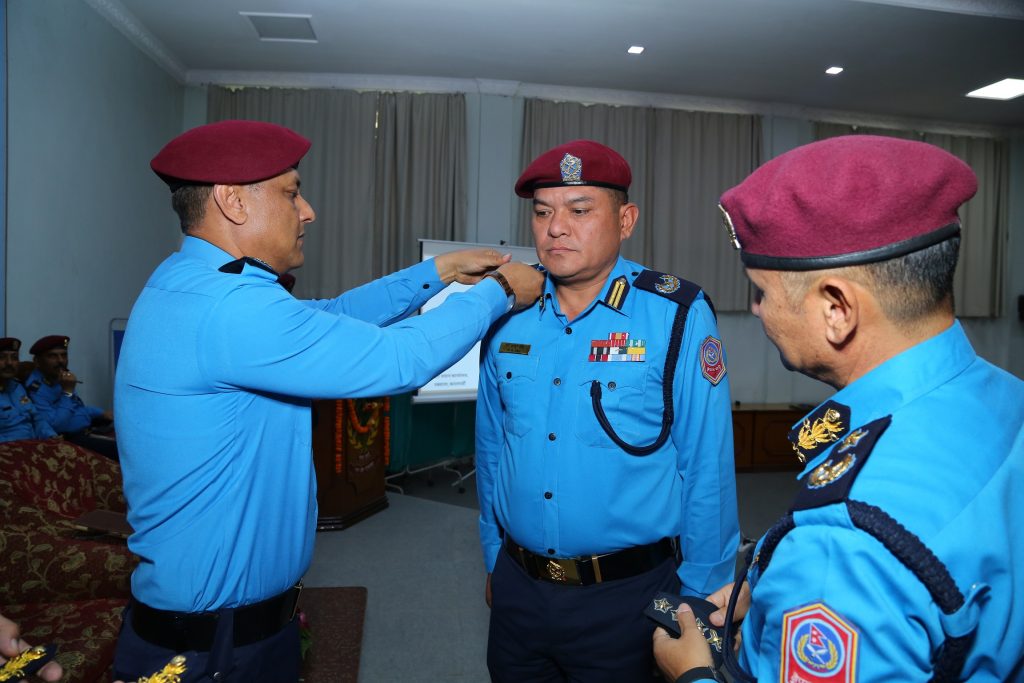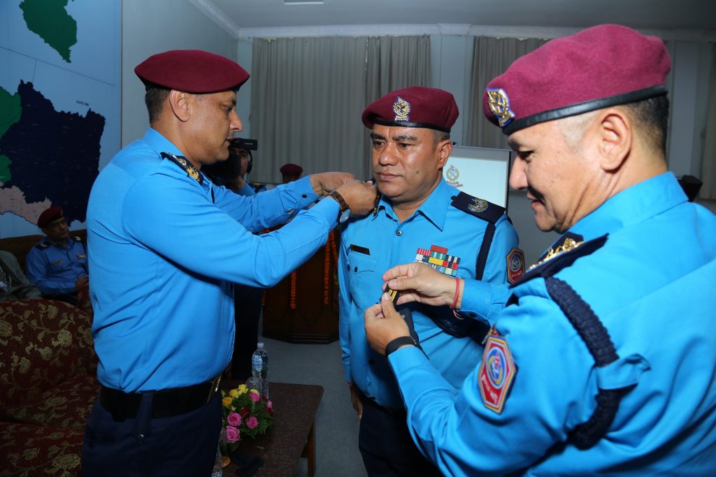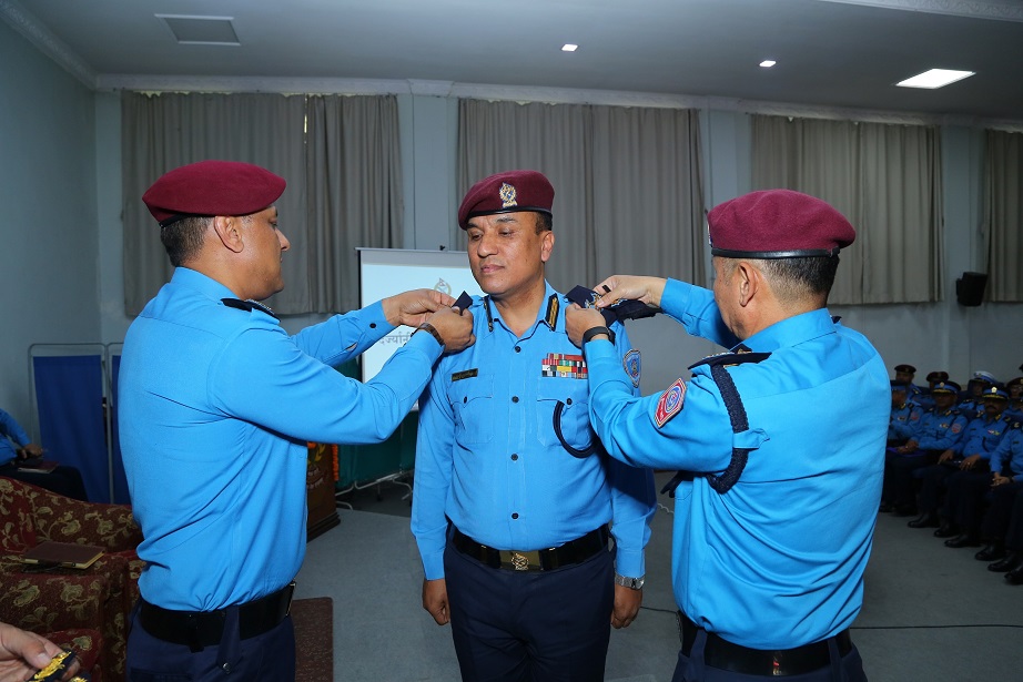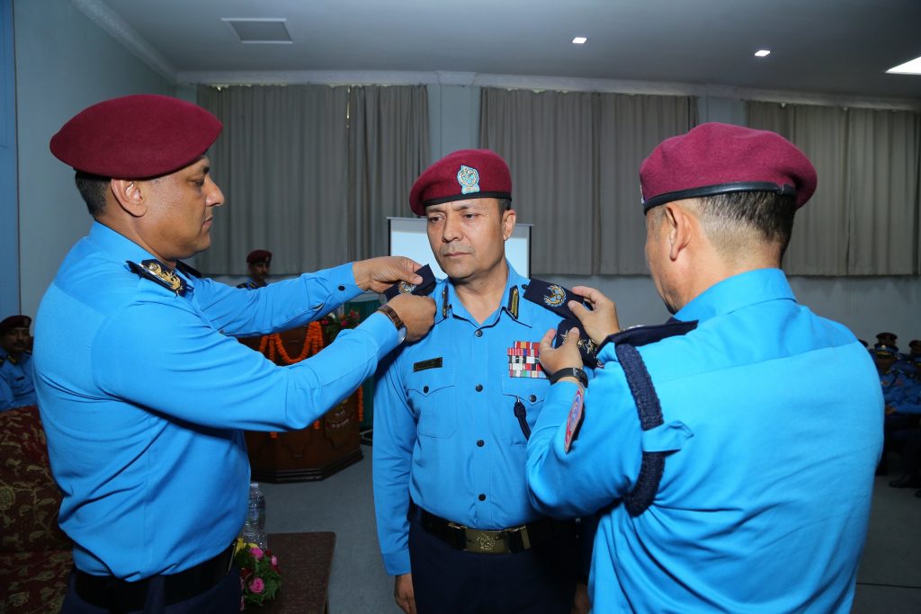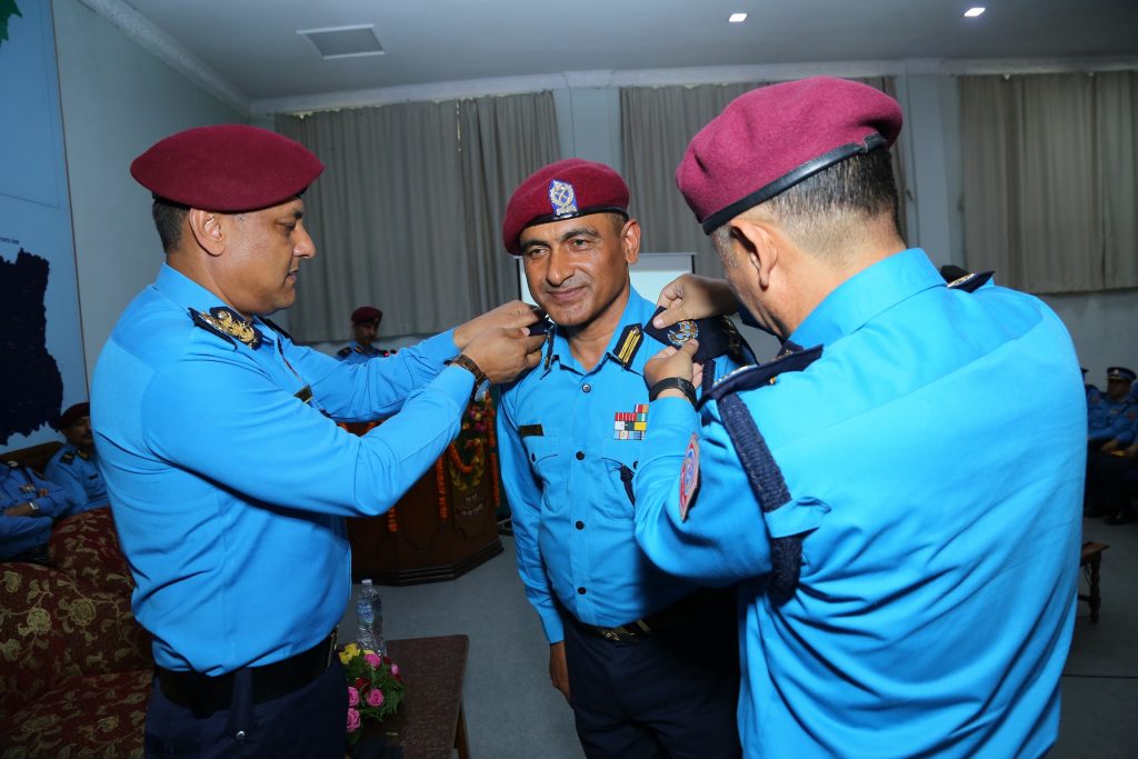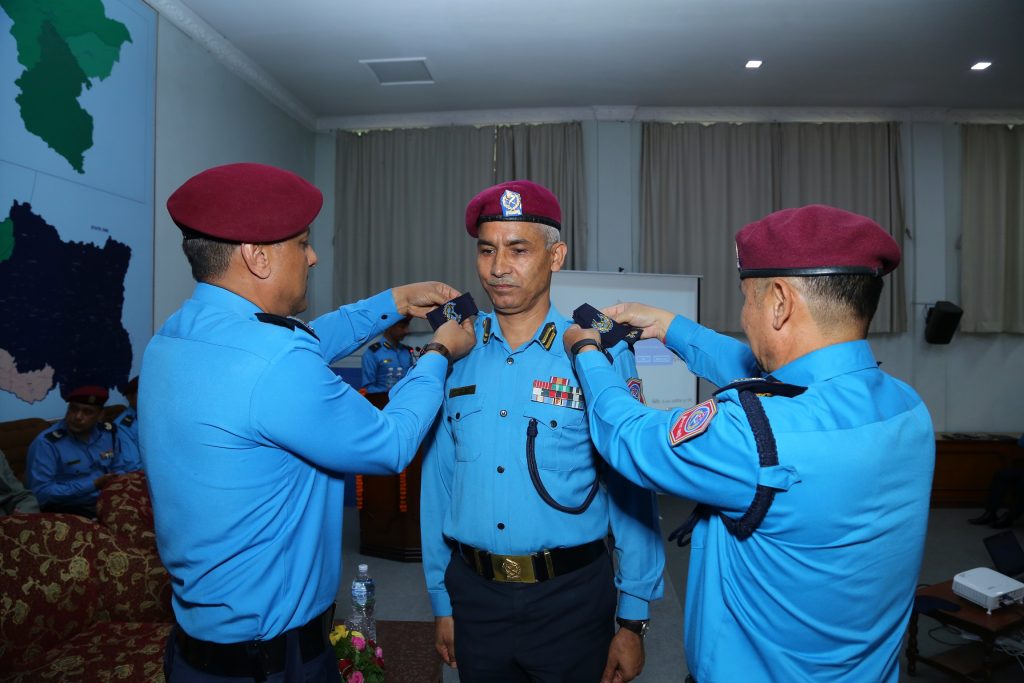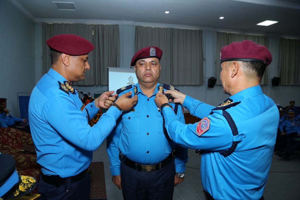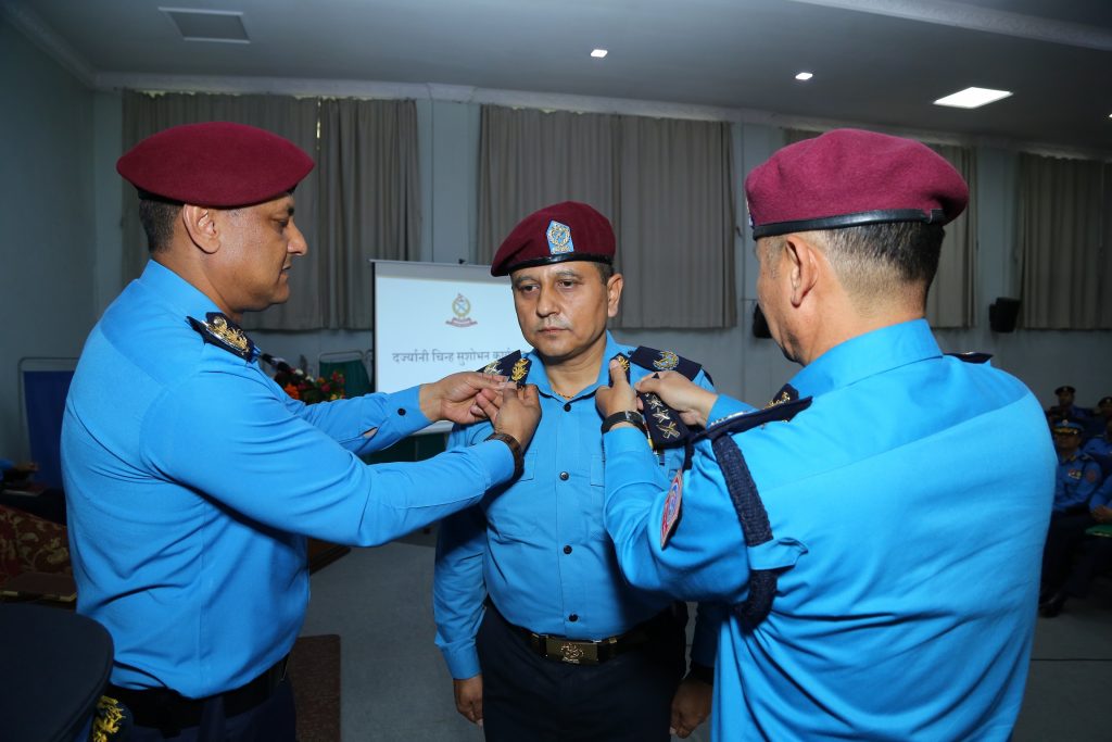 प्रहरी महानिरीक्षक सर्वेन्द्र खनालले नेपाल सरकार, गृह मन्त्रालय मन्त्रीस्तरको असोज २८ गतेको निर्णयले प्रहरी बरिष्ठ उपरीक्षकबाट प्रहरी नायव महानिरीक्षकमा पदोन्नति हुनुभएका ११ जना वरिष्ठ प्रहरी अधिकृतहरुलाई आइतबार प्रहरी प्रधान कार्यालयमा आयोजित एक समारोहबीच दर्ज्यानी चिन्हद्वारा सुशोभन गर्नुभयो ।