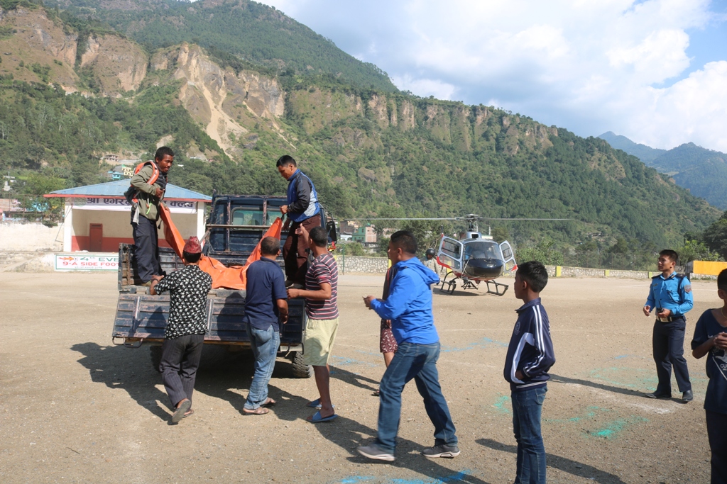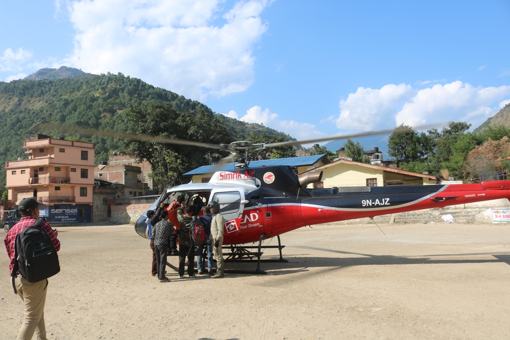 सिम्रिक एअरको हेलिकप्टरको प्रयोगमा आइतबार बिहान खोजी गरी मृतक सबै ९ जना पर्यटकको शव सङ्कलन गरिएको थियो । दक्ष जनशक्ति र उपकरण नहुँदा तथा समय अभावका कारणले गर्दा शनिबार बेपत्ता पर्यटकको शव देखिए पनि उद्धार उद्धार हुन सकेन । खोंच र अप्ठ्यारो भिरमा रहेका कारण उपकरणविना मृतकको शव सङ्कलन गर्न समस्या भएको थियो । बेपत्ता भएकाहरुको खोजीका लागि गूर्जा गाउँबाट १६ जना स्थानीय शनिबार घटनास्थल पुगेर शव भेटाएका थिए । गूर्जा गाउँदेखि घटनास्थल गूर्जा हिमालको आधारशिविर पाँच घण्टाको दुरीमा पर्छ । शनिबार बिहान उद्धारका लागि सिम्रिक एअरको हेलिकप्टर गएपनि अवतरण हुन नसकेपछि फर्किएको थियो ।