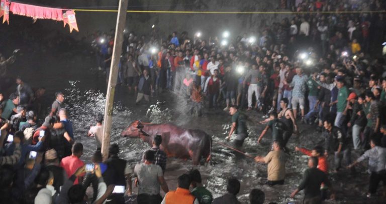 महानवमीको दिन आज साँझ मनाइने भक्तपुरको प्रसिद्ध खःमेय अर्थात् राँगो जात्रा सम्पन्न भएको छ । धार्मिक एवम् सांस्कृतिक दृष्टिले महत्वपूर्ण मानिने सो जात्रा महिषासुर दैत्यको प्रतीकका रुपमा वध गरी असत्यमाथि सत्यको विजयीका रुपमा मनाइएको छ ।