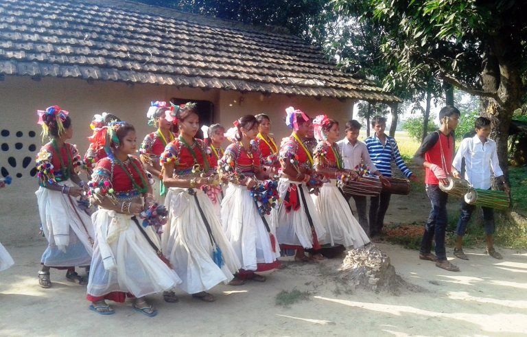 पालो पर्खदै पहुरा लिएर थारु समुदायका बालबालिका, बुढापाका, महिला र तन्नेरी टीका थाप्न मान्यजन कहाँ जाने गर्छन् ।