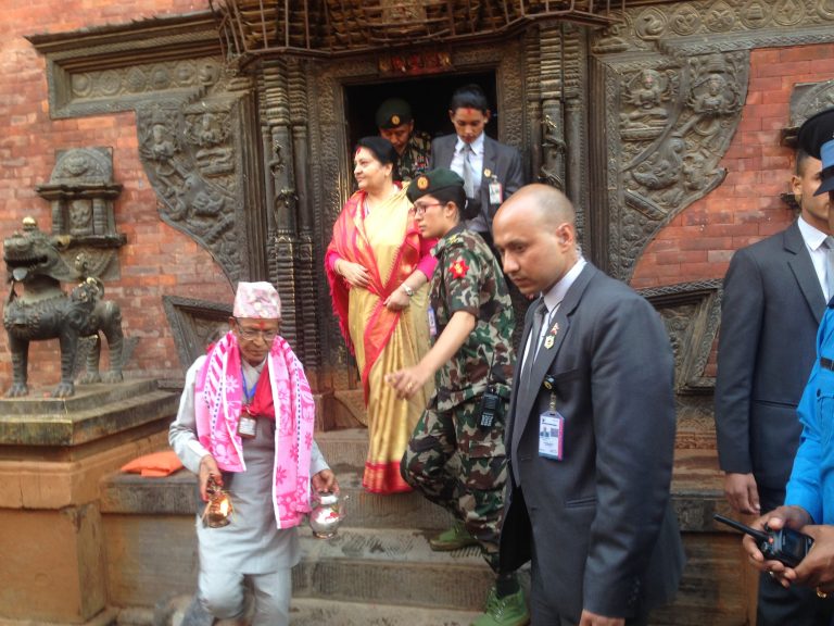 दशैँको अन्तिम दिन बुधबार कोजाग्रत पूर्णिमाको अवसरमा राष्ट्रपति विद्यादेवी भण्डारीले भक्तपुरको प्रसिद्ध नवदुर्गा मन्दिरमा सरिक भई नवदुर्गा भवानीको पूजाअर्चना गर्नु भएको छ ।राष्ट्रप्रमुखका रूपमा राष्ट्रपति भण्डारीले अपरान्ह मन्दिरमा पुगेर नवदुर्गाको पूजा गरी दर्शन गरेर प्रसाद ग्रहण गर्नुभएको हो ।
