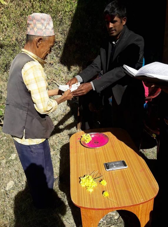रुकुम पश्चिमको बाँफिकोट गाँउपालिका वडा नं ५ का वडा अध्यक्ष कस्तुप दाहालले आफ्नो सेवा सुबिधाबाट पाएको रकम असहायलाई प्रदान गर्नुभएको छ ।