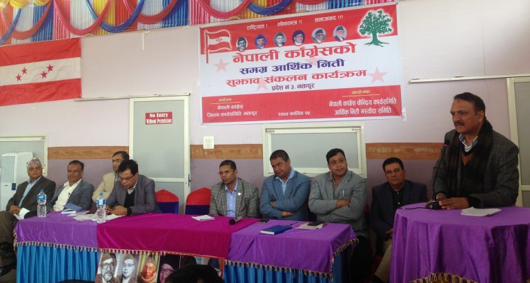 कार्यक्रममा नेपाली काङ्ग्रेसका सहमहामन्त्री तथा आर्थिक सुझाब मस्यौदा समितिका संयोजक डा प्रकाशशरण महतले उत्पादनमुखी आर्थिक नीति बन्नुपर्नेमा जोड दिंदै वर्तमान सरकारले समग्र राष्ट्रिय हितलाई महत्व नदिई पार्टीमुखी आर्थिक नीतिलाई मात्र जोड दिएको आरोप लगाउनुभयो ।