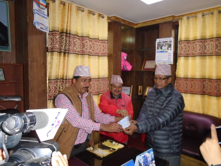 रेडक्रसले रक्त सञ्चार सेवा केन्द्रलाई व्यवस्थित रुपमा सञ्चालन गरी निःशुल्क रुपमा सेवा उपलब्ध गराउन नगरपालिकासित सहयोगका लागि आग्रह गरेको थियो । चेक हस्तान्तरण कार्यक्रममा नगर प्रमुख विष्टले समृद्ध नगर बनाउन सबैसित साझेदारी गरिने नीति अन्र्तगत रक्त सञ्चार सेवालाई व्यवस्थित रुपमा सञ्चालन गरी निःशुल्क सेवा उपलब्ध गराउन सहयोग गरिएको बताए ।