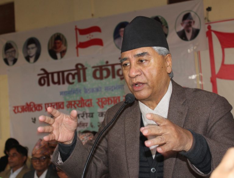 नेपाली काँग्रेस महासमिती बैठक सन्दर्भमा राजनैतिक एवं मस्यौदा सुझाव संकलनका लागि बिहिवार भैरहवामा आयोजित पाँच नम्बर प्रदेश स्तरीय कार्यशालाको उद्घाटन गर्दै सभापति देउवाले आफ्नै पार्टीका नेताहरु आफु विरुद्ध लागेपनि अधिनायकवादतिर लम्किरहेको केपी ओलीको विरुद्ध विरोध नगरेको बताउनु भयो ।
