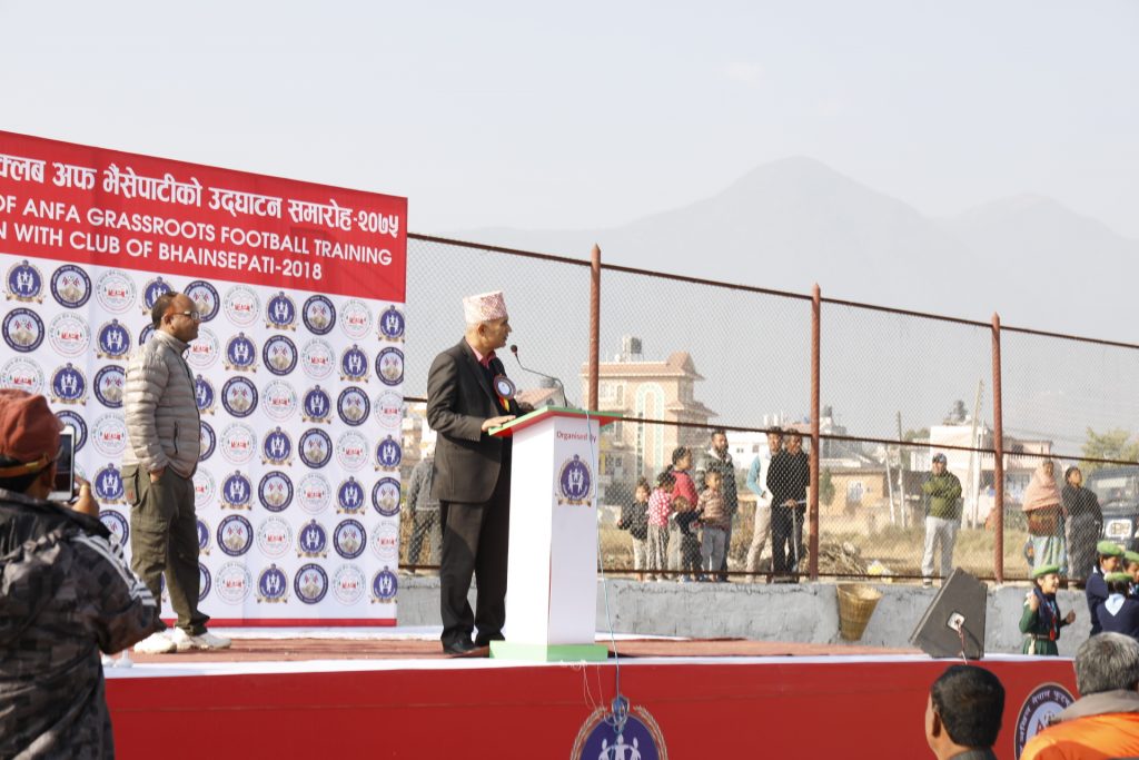 कार्यक्रमको नेकपाका महासचिव विष्णु पौडेलले उद्घाटन गर्नुभएको थियो । कार्यक्रममा बोल्दै उहाले खेलकुद मन्त्रालय र एन्फाको सहयोगमा सो मैदानलाई थप व्यवस्थित बनाउने बताउनुभयो । त्यसको निम्ति खेलकुद मन्त्रालयले सहयोग गर्नेछ–उहाले भन्नुभयो । उहाले अहिलेको समयमा वालवालिकाहरु विद्युतीय सामाग्रीप्रति मोह बढ्दै गएको अवस्थामा खुला चौरमा फुटवल खेल खेल्ने मौका उपलब्ध गराइएको बताउनुभयो । उहाले भन्नुभयो–अहिलेका बच्चा खुट्टा लुला भुडी ठुला देखिएका छन, उनीहरुको शारिरिक विकासका लागि फुटबल तालिम दिएका हौ । उहाले खेल मैदानमा दुवो रोपिने समेत जानकारी दिनुभयो ।