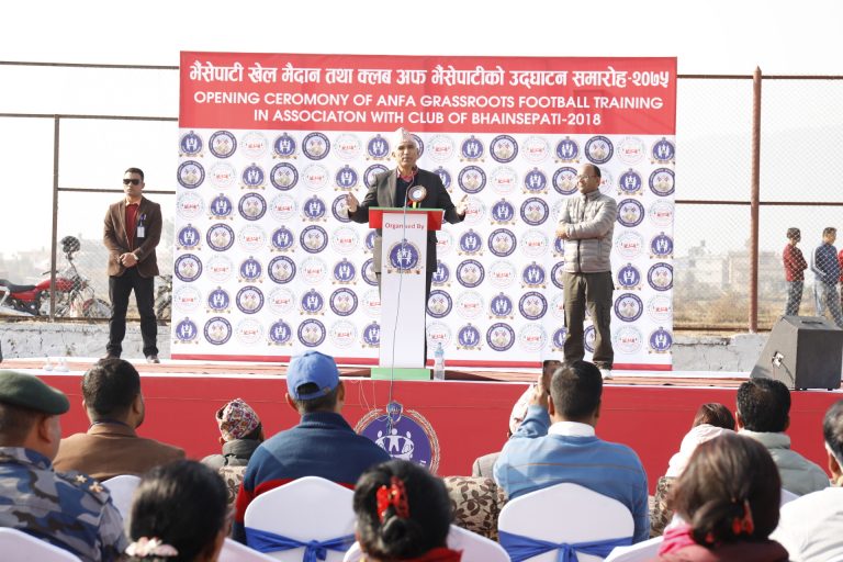कार्यक्रमको नेकपाका महासचिव विष्णु पौडेलले उद्घाटन गर्नुभएको थियो । कार्यक्रममा बोल्दै उहाले खेलकुद मन्त्रालय र एन्फाको सहयोगमा सो मैदानलाई थप व्यवस्थित बनाउने बताउनुभयो । त्यसको निम्ति खेलकुद मन्त्रालयले सहयोग गर्नेछ–उहाले भन्नुभयो । उहाले अहिलेको समयमा वालवालिकाहरु विद्युतीय सामाग्रीप्रति मोह बढ्दै गएको अवस्थामा खुला चौरमा फुटवल खेल खेल्ने मौका उपलब्ध गराइएको बताउनुभयो । उहाले भन्नुभयो–अहिलेका बच्चा खुट्टा लुला भुडी ठुला देखिएका छन, उनीहरुको शारिरिक विकासका लागि फुटबल तालिम दिएका हौ । उहाले खेल मैदानमा दुवो रोपिने समेत जानकारी दिनुभयो ।