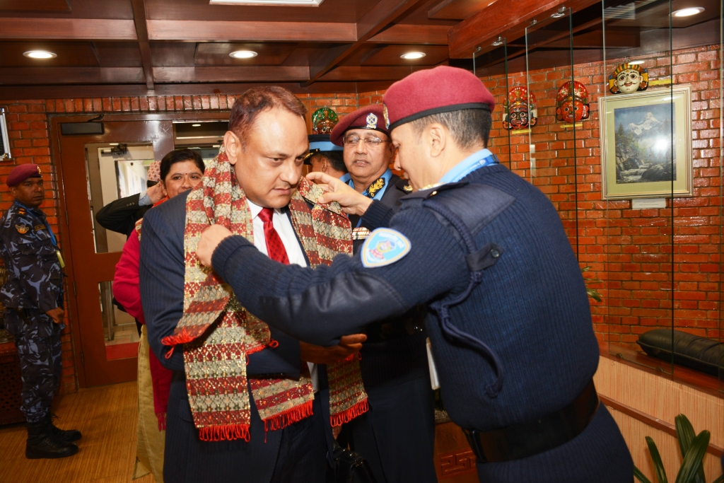 उहाँहरुलाई प्रहरी अतिरिक्त महानिरीक्षक पुष्कर कार्की, प्रहरी नायव महानिरीक्षकहरू लगायत वरिष्ठ प्रहरी अधिकृतहरूले त्रिभुवन अन्तर्राष्ट्रिय विमानस्थल गौचरमा हार्दिक स्वागत गर्नुभयो ।