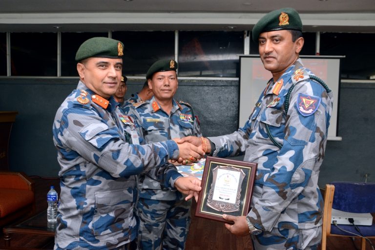 सशस्त्र प्रहरी महानिरीक्षक शैलेन्द्र खनालले उक्त तालिममा सर्वोत्कृष्ट हुन सफल सशस्त्र प्रहरी उपरीक्षक बिदुर खड्कालाई सशस्त्र प्रहरी बल नेपाल प्रधान कार्यालय हल्चोक स्वयम्भुमा आयोजित सो तालिमको समापन समारोहमा पुरस्कार तथा प्रमाणपत्र प्रदान गर्नुभयो ।