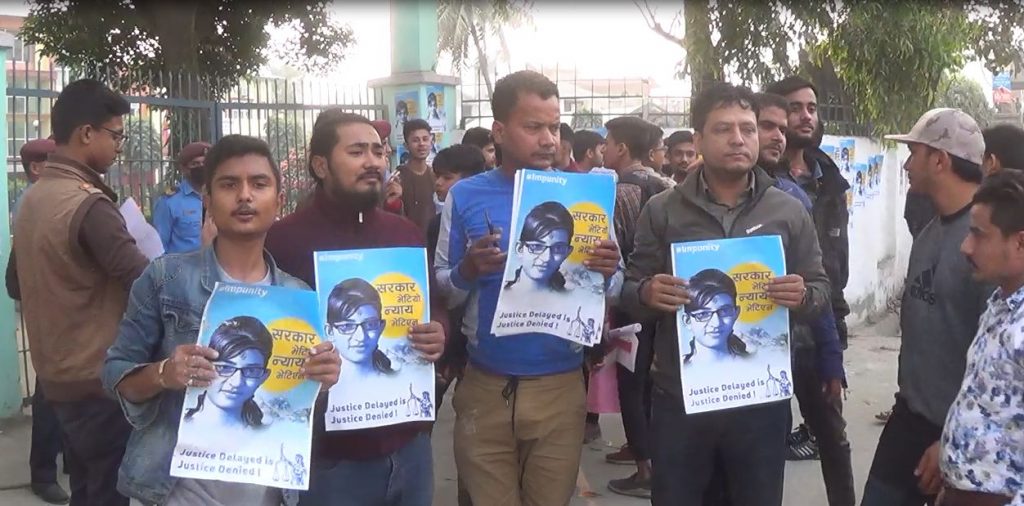बालिका निर्मला पन्तको फोटो र प्लेकार्ड सहित स्थानिय ट्राफिकचोकमा जम्मा भएका युवा र विद्यार्थी नेता सम्मिलित समूहले नगरक्षेत्रको विभिन्न भागमा प्रर्दशन गरेको थियो । सो क्रममा उनीहरुले प्रदेशसभा भवन अगाडि धर्नादिदै सरकार बिरुद्ध चर्का नाराबाजी गरेका थिए ।