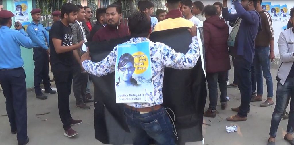 न्याय माग्ने क्रममा काठमाडौमा भएको प्रर्दशनमा प्रहरीले सर्वसाधारणलाई पक्राउ गरेको विरोध तथा निर्मलालाई न्याय दिन माग गर्दै प्रर्दशन गरिएको विद्यार्थीहरुले बताएका छन ।