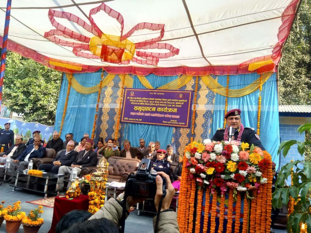 प्रहरी महानिरीक्षक सर्वेन्द्र खनालले नागरिक सुरक्षाको खाँतिर देशका विभिन्न स्थानमा विविध चुनौतिको सामना गर्दै हरप्रहर तैनाथ रहने प्रहरी कर्मचारीहरुलाई सुविधा सम्पन्न कार्यालय र आवासको व्यवस्था गर्नु प्रहरी संगठनको उच्च प्राथमिकता रहेको बताउनुभएको छ ।