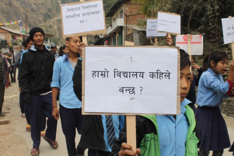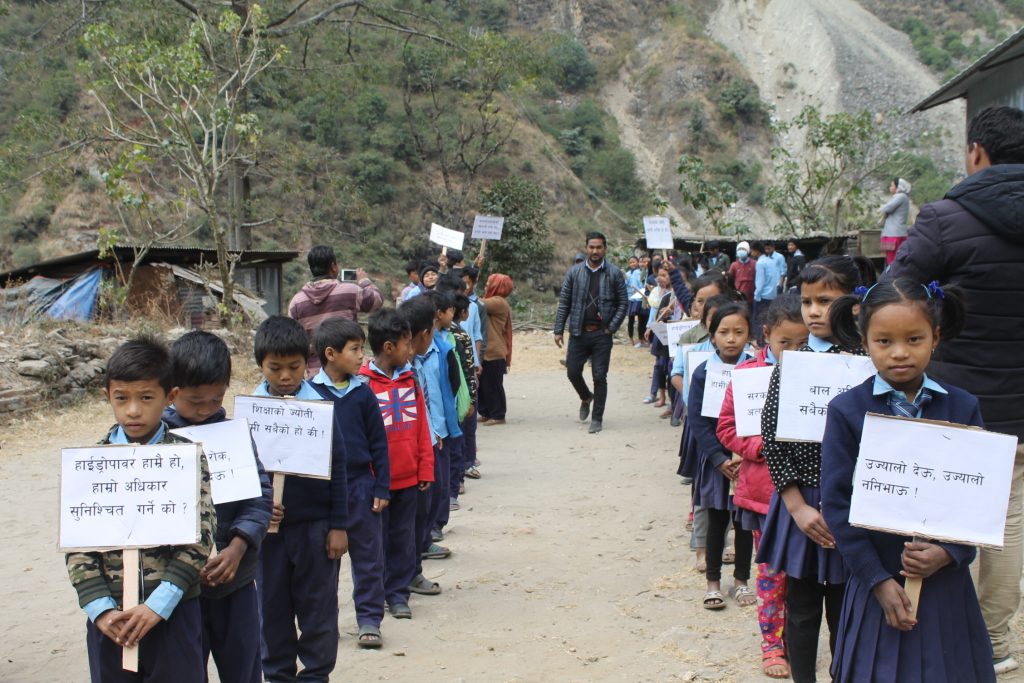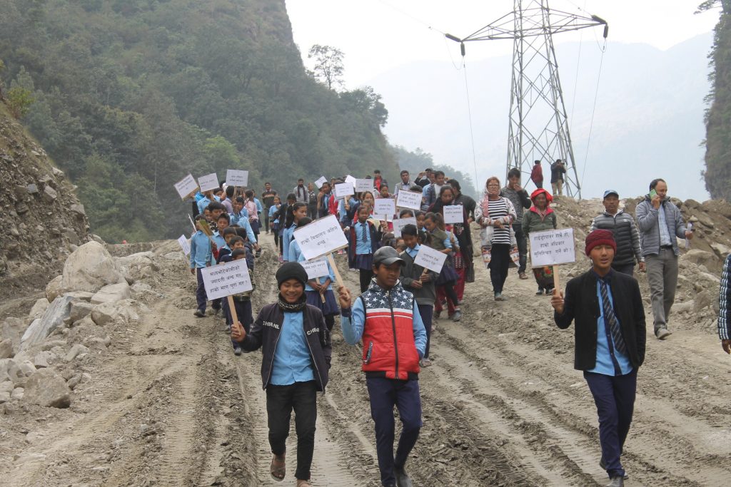 स्कुले बालबालिकाको यो दवाव अभियानमा स्थानीयवासीले पनि साथ दिए अनि आयोजनाको साइटमै पुगेर काम रोकीदिए । हातमा प्ले कार्ड बोकेर सडकमा निस्किएका विद्यार्थीहरुको आवाज एउटै थियो,–स्कुल बनाइदेउ । ‘हाइड्रोपावरका कारण हामीले पढ्न नपाउने ?’, प्ले कार्ड बोकेर सडकमा निस्किएका कक्षा ९ मा अध्ययनरत विद्यार्थी विश्व श्रेष्ठले भने,–केहि मागेको छैन, हामी पढ्ने स्कुल बनाइदेऊ ।’