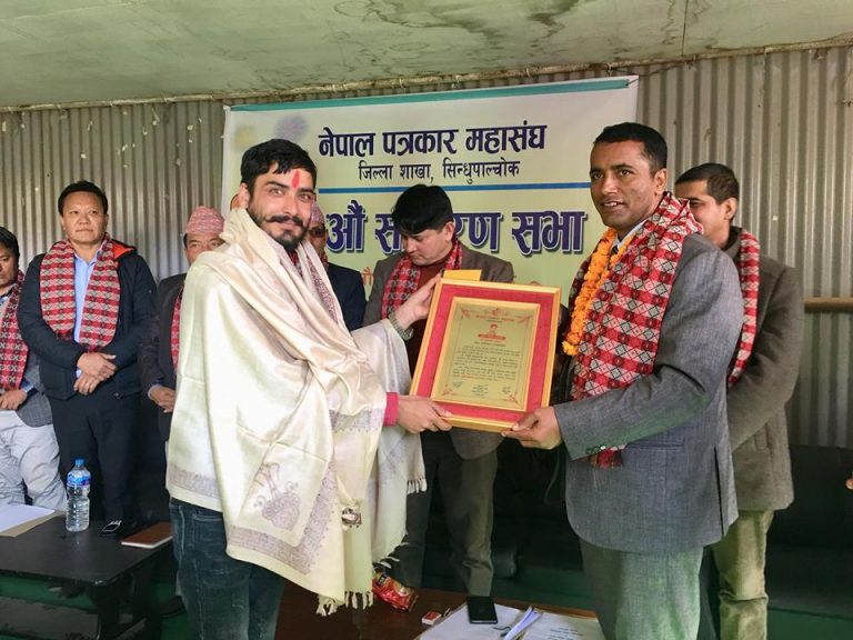 सिन्धुपाल्चोक (नेस)। नेपाल समाचारपत्र दैनिकका जिल्ला संवाददाता नानीराम नेपालसहित जिल्लाका पाँच पत्रकार पुरस्कृत भएका छन् । नेपाल पत्रकार महासंघ जिल्ला शाखाको २५औं वार्षिक साधारणसभाका अवसरमा सोमबार समाचारपत्रकर्मी नेपालसहित पाँच पत्रकारलाई नगदसहित पुरस्कार र एक लाई सम्मान समेत गरिएको छ ।