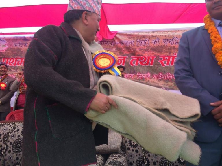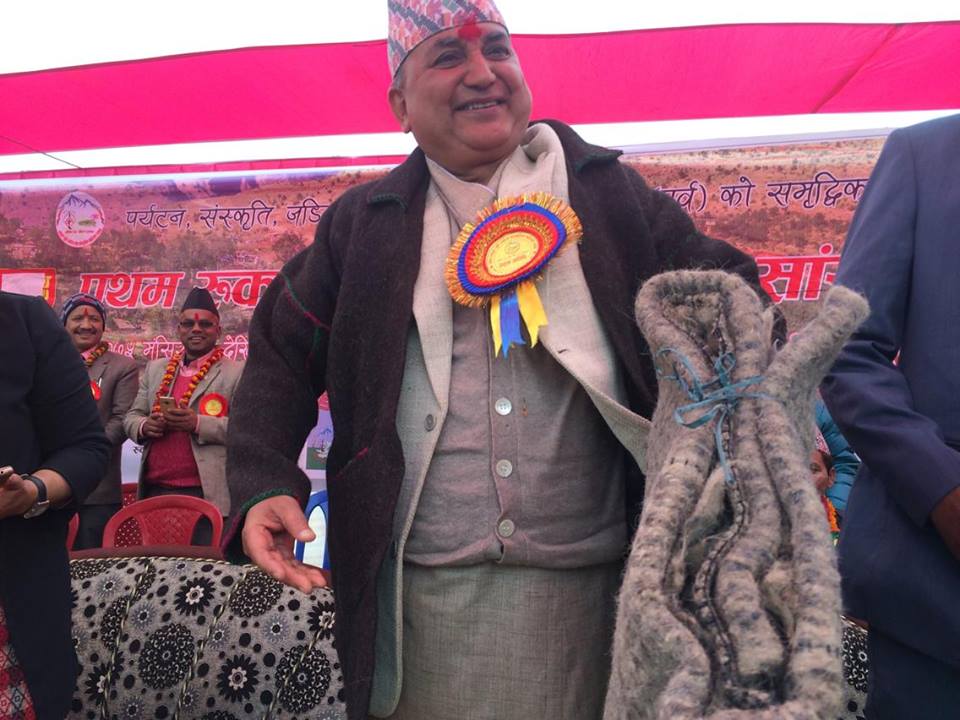 मायाको चिनोको रुपमा अल्लोको कोट मात्र लगाएनन् राडीपाखीबाट बुनेको कम्बल (काम्लो) र कम्बल भित्र आफ्ना माग पनि उपप्रधानमन्त्रीलाई स्थानीयले बुझाए । पुथाउत्तरगंगा गाँउपालिकाका स्थानीयले स्थानीय राडीपाखीको कम्बल र त्यसभित्र आफ्नो माग पत्र राखेका छन् । उनीहरुले जिल्लाको सदरमुकामको विवाद टुंग्याउनका लागी सहयोग गर्न अनुरोध गरेका छन् ।
