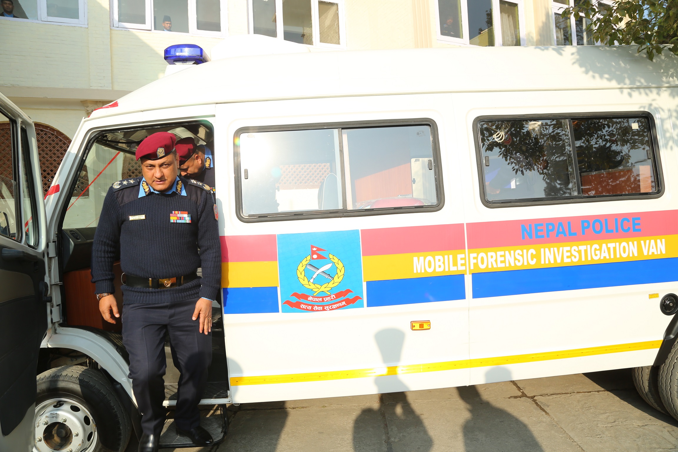 प्रहरी महानिरीक्षक सर्वेन्द्र खनालले अपराध अनुसन्धानका लागि अत्यावश्यक आधुनिक उपकरण जडान गरिएको ‘मोबाईल फरेन्सिक ईन्भेष्टिगेसन भ्यान’ प्रहरी प्रधान कार्यालयमा बिहीबार आयोजित एक कार्यक्रम बीच महानगरीय प्रहरी अपराध महाशाखा, टेकुलाई हस्तान्तरण गर्नुभयो ।