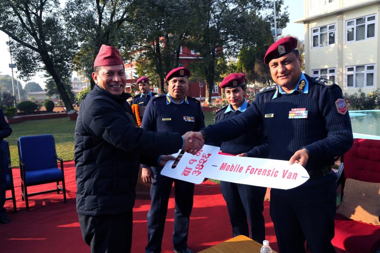 प्रहरी महानिरीक्षक सर्वेन्द्र खनालले अपराध अनुसन्धानका लागि अत्यावश्यक आधुनिक उपकरण जडान गरिएको ‘मोबाईल फरेन्सिक ईन्भेष्टिगेसन भ्यान’ प्रहरी प्रधान कार्यालयमा बिहीबार आयोजित एक कार्यक्रम बीच महानगरीय प्रहरी अपराध महाशाखा, टेकुलाई हस्तान्तरण गर्नुभयो ।