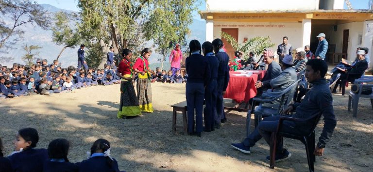 फोटो क्याप्सन ः सुरक्षित गर्भपतन सम्बन्धि दोहरी गित गाउदै कपल्लेकीका बिद्यार्थीहरु । तस्विर ः विमल बिष्ट डोटी