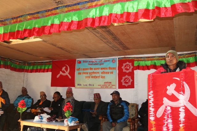 तत्कालीन नेकपा एमाले र नेकपा माओवादीबीच एकता प्रक्रिया गाउँस्तरमा चलिरहेको वेला जिल्लाका सातै वटा गाउँपालिकामा स्थानीय तहको र जिल्ला कमिटी चयन हुँदा सम्मको लागि गाउँपालिका पार्टी र कार्यलय व्यबस्थापनमा हुने दैनिक काम संचालनको लागि समितिको टुङ्गो लगाएको छ ।