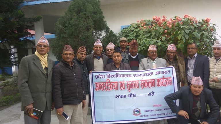 कार्यदलले झापाको विर्तामोडमा अन्तक्र्रियाको आयोजना गरी त्यहाँका विभिन्न राजनीतिक दलका नेतृत्व, सांसद, पूर्वमन्त्री, स्थानीय तहका जनप्रतिनिधि, प्राध्यापक, विद्यार्थी सङ्गठन तथा स्ववियूको प्रतिनिधित्वमा दृष्टिकोण सङ्कलन गरेको छ । कार्यदलका संयोजक प्राडा महेशराज दाहालले विश्वविद्यालय स्थापना गर्न सरोकारवाला पक्षसँग परामर्श गरी सुझाव सङ्कलन गरिने बताउनुभयो ।