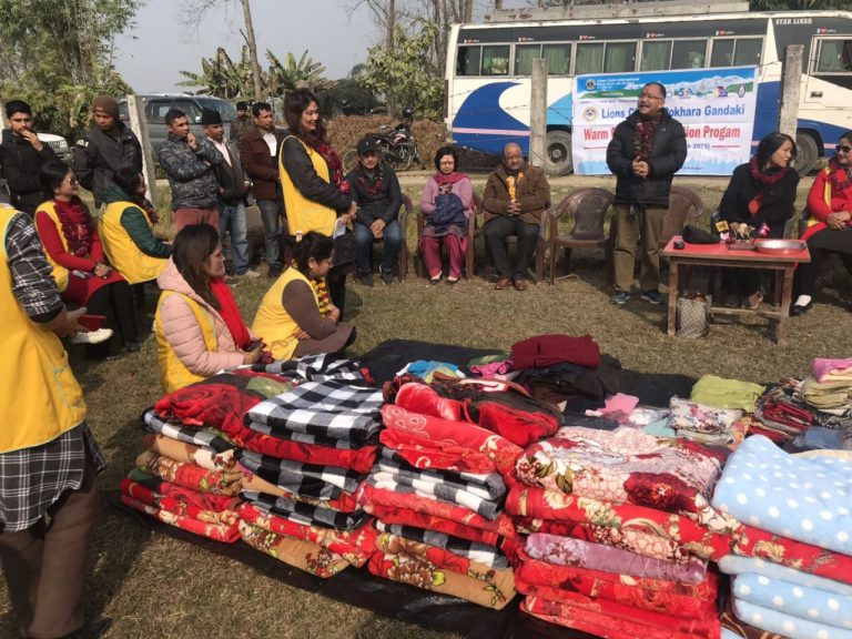 लायन्स क्लब अन्र्तराष्ट्रियको पहिलो महिला मात्रको क्लब लायन्स क्लब अफ पोखरा गण्डकीले थारु बस्तीमा ब्लाङकेट र न्यानो कपडा बितरण गरेको छ ।