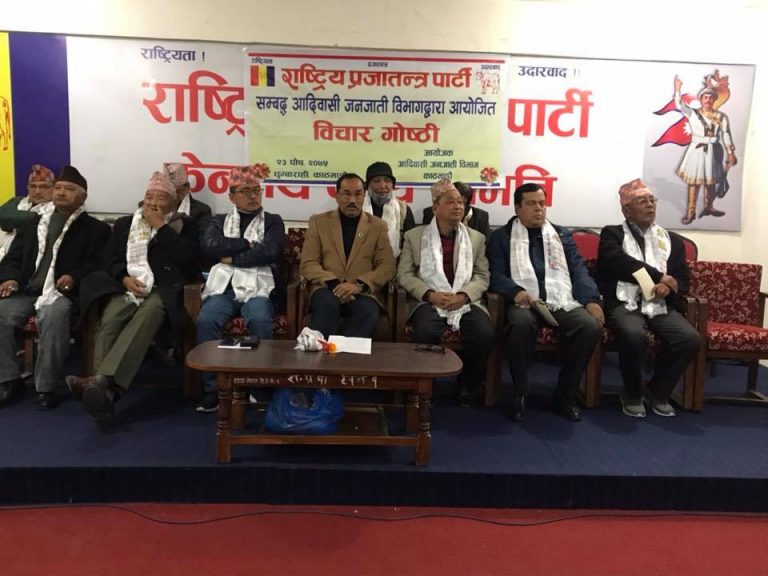 सोमबार पार्टीको आदीवासी जनजाति विभागद्वारा आयोजित ‘राष्ट्रिय प्रजातन्त्र पार्टी र आदिवासी जनजाति बिचको सम्बन्ध’ विषयक विचार गोष्ठीमा बोल्दै थापाले हिन्दु, बौद्ध, किराँत, मुस्लीम र क्रिश्चियन सबैको साझा पार्टीको रुपमा राप्रपालाई निर्माण गर्ने दावी गर्नुभयो ।