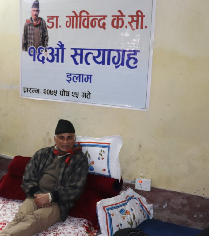 डा. गोविन्द केसीले बुधबार संसद्को शिक्षा समितिबाट आपूmसँग भएको सम्झौताविपरीत चिकित्सा शिक्षा विधेयक पारित गरेको विरोधमा १६औँ सत्याग्रह इलामबाट शुरु गर्नुभएको छ । केसीले इलामनगरपालिका–७ मा रहेको इन्दुमाया लिम्बूको घरमा बुधबार साँझ ५ बजेबाट सत्याग्रह सुरु गर्नुभएको हो ।
