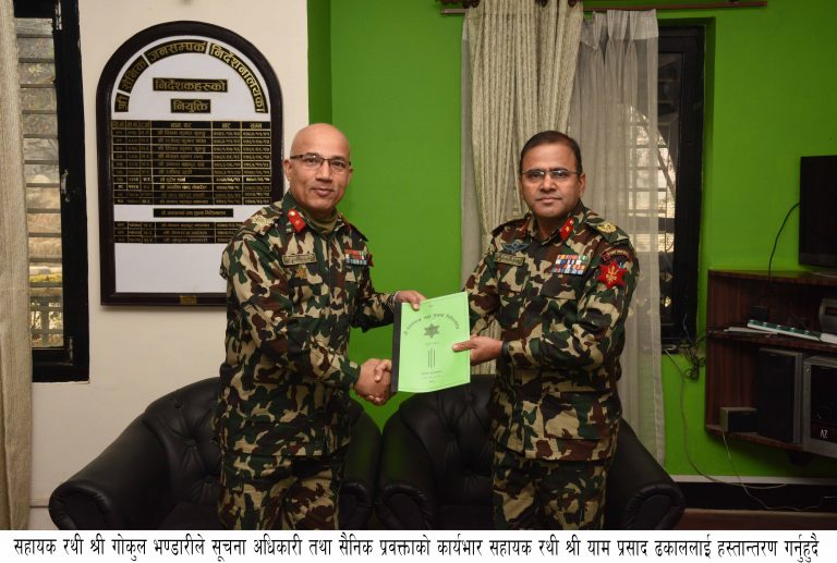 जनसम्पर्क तथा सूचना निर्देशनालयका निर्देशक एवं नेपाली सेनाको प्रवक्ताको जिम्मेवारी सहायक रथी याम प्रसाद ढकाललाई हस्तान्तराण गरिएको छ ।