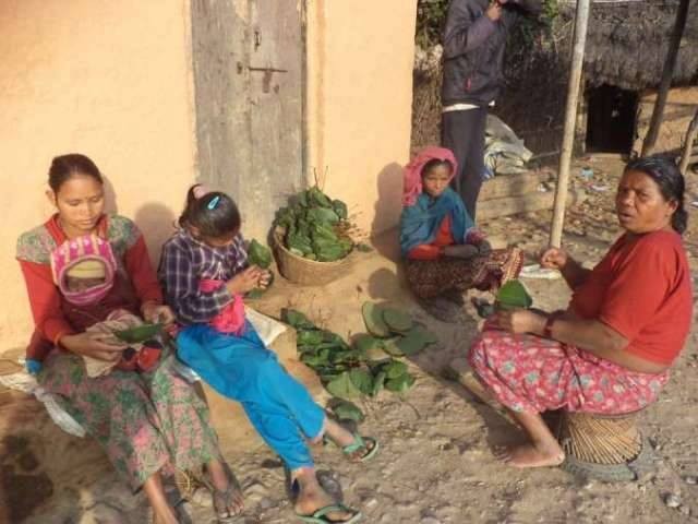 कञ्चनपुर जिल्लाका थारू बस्तीमा पनि महिला तथा पुरुष आ–आफ्नै काममा व्यस्त छन् । पुरुष सुँगुरको मासु काट्नेदेखि लिएर अन्य काममा व्यस्त छन् भने महिला रोटी पकाउने तथा पिठोको तयारीदेखि लिएर दुना टपरी बनाउनमा व्यस्त छन् ।