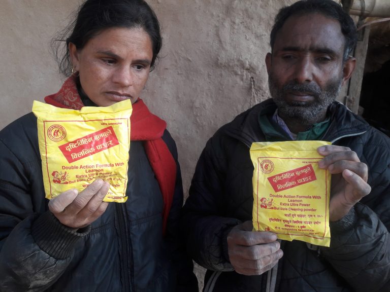 सुर्खेत बीरेन्द्रनगर बसपार्कको छेउमै बस्दै आएका मयप्रसाद जैसी र उनकी श्रीमति रेणुका दुवैजना दृष्टिविहीन हुन् । पाँच वर्ष अघिसम्म मागेरै गुजारा चलाएको बताउने यो जोडी अहिले अरुको सहारामा नभई आफ्नै पौरखमा बाँचिरहेको छ । भाँडा धुने सरफ उद्योग संचालन गरेका उनीहरु आँखाले धोका दिए पनि पौरखले जीवन फेरिएको बताउँछन् ।