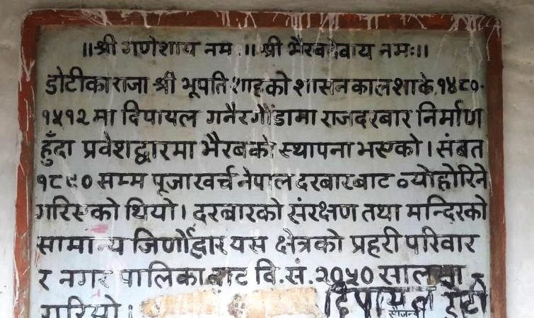 डोटीको दिपायल सिलगढी नगरपालिकाले भग्नावशेष अवस्थामा दिपायलमा रहेको डोटेली राजाको दरबारको संरक्षण तथा सम्वद्र्धन गर्ने भएको छ । उक्त दरबार संरक्षण तथा सम्वद्र्धनका लागि दिपायल सिलगढी नगरपालिकाले यस आर्थिक वर्षमा १५ लाख खर्च गर्न लागेको छ । बाईसे चौवीसे राज्यका पालामा डोटेली राजा बस्नका लागि मासको गारोले निर्माण गरिएको उक्त दरबार संरक्षण सम्वद्र्धनको अभावमा भग्नावशेष अवस्थामा रहेको छ ।