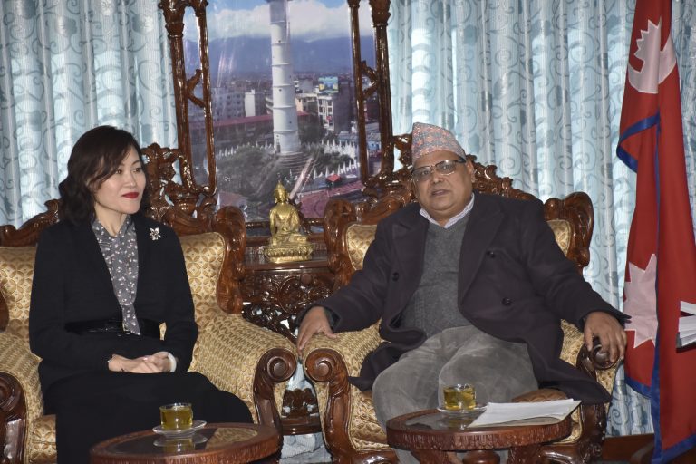 काठमाडौं(नेस) । सभामुख कृष्णबहादुर महरासँग नेपालस्थित चीनका नवनियुक्त राजदूत हाउ याङछीले शिष्टाचार भेटवार्ता गर्नुभएको छ । सोमबार सिंहदरबार राजदूत याङछीले सभामुख महरासँग भेटवार्ता गर्नुभएको हो ।