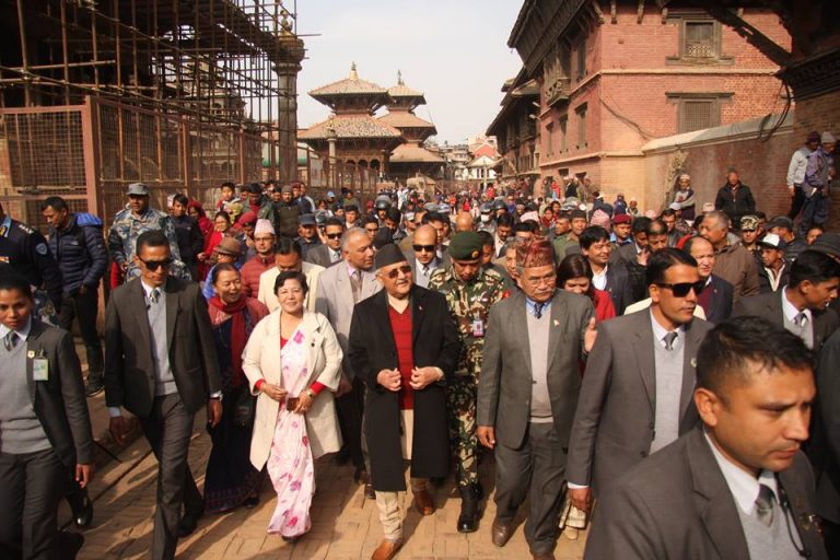 प्रधानमन्त्री केपी शर्मा ओलीले पाटन दरबार क्षेत्रमा भएका पुनर्निर्माणका कार्यहरुको अवलोकन गर्नुभएको छ ।