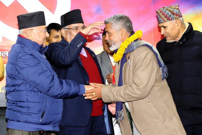 नेकपाको पार्टी कार्यालय धूम्रवाराहीमा आज आयोजित कार्यक्रममा प्रधानमन्त्री एवं नेकपाका अध्यक्ष केपी शर्मा ओली र पूर्वप्रधानमन्त्री एवं अर्का अध्यक्ष पुष्पकमल दाहाल ‘प्रचण्ड’ले नेका चितवन जिल्लाका पूर्वसभापतिसमेत रहनुभएका भुसाललाई स्वागत गर्नुभयो ।