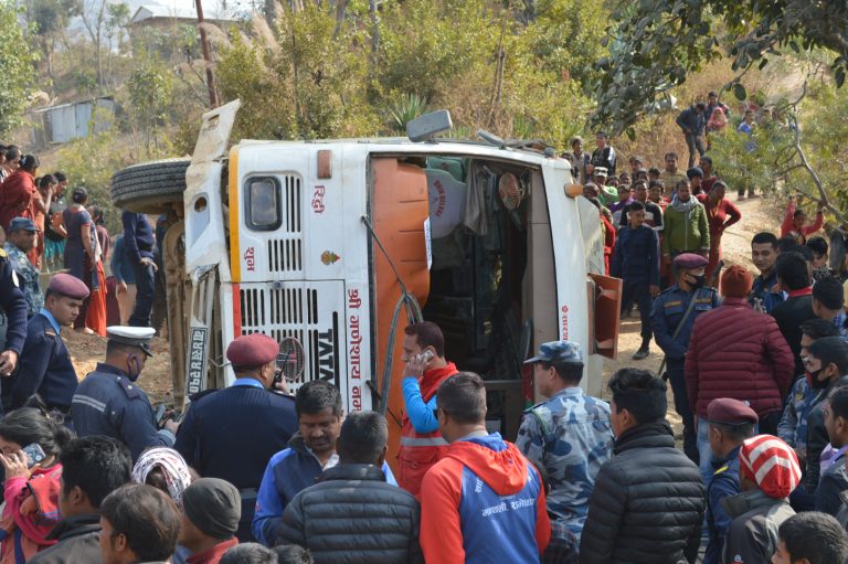 ओरालो कालोपत्रे सडकमा गुडिरहेको बसको एक्कासी ब्रेक फेलभएपछि चालकले दुर्घटना हुनबाट जोगाउँन सडकको भित्तातिरको गल्छीमा बस उकालेका थिए । बस दुर्घटना हुनबाट जोगाउँन गल्छीमा उकाल्दा बस पल्टिएको थियो । बस चालक मन्थली– ८ का पुर्ण बहादुर माझीलाई प्रहरीले नियान्त्रणमा लिएर दुर्घटनाको बारेमा अनुसन्धन गरीरहेको प्रहरी प्रमुख सिंहले जानकारी दिए ।