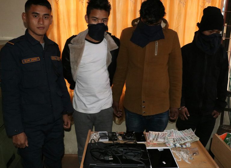 चक्कु एक थान,फलामको छिनो एक थान फलामको ह्यामर एक थान २० हजार ६ सय १० रुपैया , सेतो रंगको पाउजु ६ थान,सिक्री एक थान, सानो बाला १३ ठूलो बाला दुइ, औँठी एक, सुनौलो रङको १७ टुक्रा ६९ लाल, कानमा लगाउने टप २ थान, ७ लालको मुन्द्रा २ थान मोबाइल चार थान बरामद भएको प्रवक्ता गुरुङ्गले जानकारी दिए ।