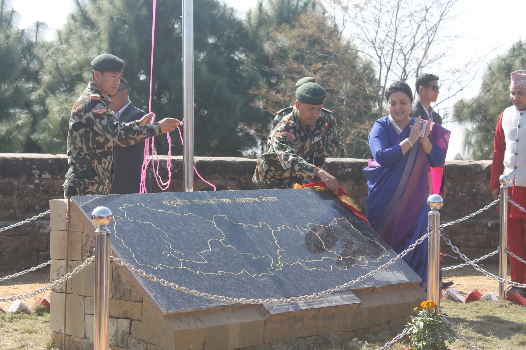‘नेपालको एकीकरण, स्वाधीनता र भौगोलिक अखण्डता सुदृढ गर्ने महान् अभियान बोकेको पवित्र गढी किल्लाको संरक्षण जरुरी छ,’ राष्ट्रपति भण्डारीले नेपाली सेनाको संगठन निर्माण गर्ने आधार खडा र वीरगाथा गाउने पवित्रस्थल मकवानपुरगढी किल्ला भएको बताउनुभयो ।
