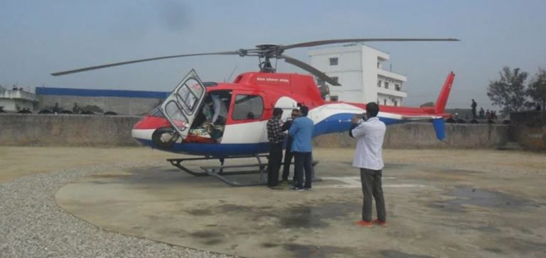 सेनाको हेलिकप्टरमार्फत उहाँलाई आइतबार दिउँसो काठमाण्डौको ग्राण्डी अन्तर्रा्ष्ट्रिय अस्पताल लगिएको जिल्ला प्रशासन कार्यालय बाराले जनाएको छ ।
