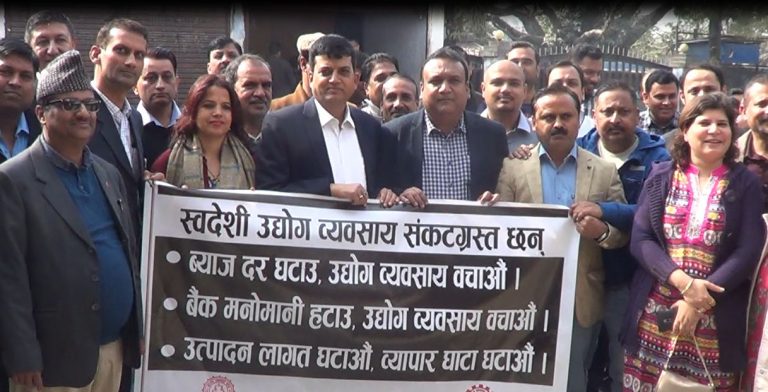 तर सम्बन्धित निकायबाट समस्या समाधानका लागि कुनै ठोस पहल नभएकाले विरोधमा उत्रन बाध्य भएको बताए । उनीहरुले नेपाल राष्ट्रबैंक मार्फत उद्योग, व्यवसाय क्षेत्रको राहतका लागि उत्पादनमूलक उद्योगहरुलाई प्रवाह भएको ऋणमा अधिकतम् ७ र व्यवसायिक क्षेत्रमा ९ प्रतिशतसम्म ब्याजदर कायम गर्न माग समेत गरेका छन् ।