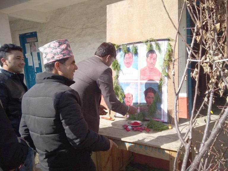 सहिद दिवस मनाउन सरकारले माथिवाट कुनै जानकारी नदिएपनि सहिदको सम्मान स्वरुप सानो बैठक वोलाएर सहिदलाई सम्मान गरेको जिससस प्रमुख रोकायाले वताउनुुभयो । त्यसै गरी समस्त प्त्रकारको तर्फवाट प्त्रकारमहांसंघ बाजुरा शाखाका वरिष्ठ उपाध्यक्ष निमेन्द्र शाहीले विगतमा सडक वाट मंचमा पुुगेर सहिद दिवस मनईन्थ्ये ा अहिले मंचवाट टेवुलमा सहिद दिवस मनाउन परेको वताउनुुभयो । सहिदका लागि यो भन्दा ठूलो अपमान केही नहुने उपाध्यक्ष शाहीको खनाई थियो ।